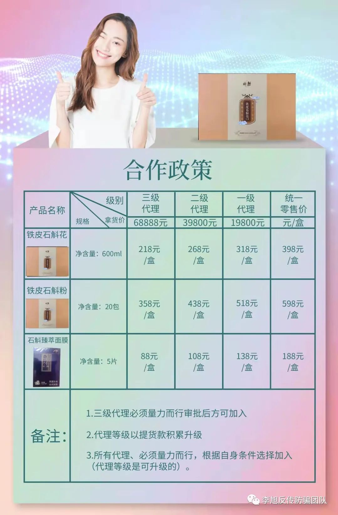 該騙局與之前曝光的殺豬盤代理手段一致。打著鐵壺石斛產(chǎn)品的名義,成立福建弘益致遠健康管理有限公司誘騙女性加盟代理。