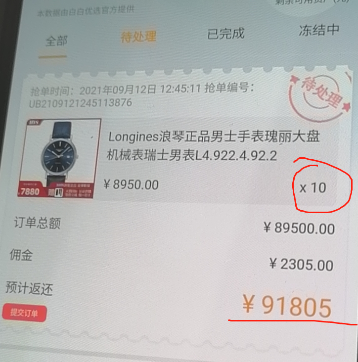 但是他的傭金不夠,我就問(wèn)推薦人怎么辦?他說(shuō)你聯(lián)系客服吧,我等一下再充值。最終把那個(gè)訂單給搶下來(lái)了。