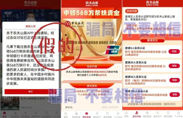 發(fā)表時間:2026-04-09 10:09作者:李旭反傳銷來源:李旭反傳防騙團隊 最近小編發(fā)現(xiàn),大多參與網(wǎng)絡項目的人,大多有著相同的特征:手里有點積蓄,想給子女減輕負擔,又或者想給自己的晚年多一份保障,同時,對新興的互聯(lián)網(wǎng)技術既好奇又陌生。 于是,為了騙到我們,騙子們也在“努力學習”,拼命“內(nèi)卷”。他們開始研究心理學,研究國家政策,甚至研究我們的方言和生活習慣。把那些根本不存在的“理財項目”,包裝得比正規(guī)產(chǎn)品還要精美,還要“高大上”。 我們在用樸素的善良看待世界,而他們卻在用精心設計的劇本收割信任。 為此,小編整理了最近咨詢較多的8個騙局,你會發(fā)現(xiàn),它們每一個都像是專門為我們量身定做的“劇本”??炊诉@些套路,你就不會再輕易被他們的“演技”所迷惑。 1、套牌“超級未來Super Future”APP 冒充所謂的“馬來西亞超級未來”公司,以“算力租賃”為名,虛構“超級未來算力NFT3”這類聽起來高科技的理財產(chǎn)品。承諾超過0.5%的日收益率,明顯違背了基本的投資規(guī)律。 前幾天,在系統(tǒng)進行一次所謂的“升級”后,APP直接關閉了提現(xiàn)通道,疑似“軟跑路”。 大家切記,任何投資理財APP,如果無法在官方應用商店找到,下載時還會出現(xiàn)安全警告,就必須要立刻停下,絕對不要繼續(xù)。 ![]() 2、虛構的“農(nóng)夫山泉”APP 假冒正規(guī)企業(yè),以贈送所謂的“568萬創(chuàng)業(yè)幫扶金”為誘餌,吸引大家進行實名注冊。 它的目的根本不是發(fā)錢,而是為了套取參與者詳細的個人身份信息。這些信息一旦泄露,很可能被用于非法借貸、電信詐騙,后果不堪設想。 該軟件沒有通過國家ICP備案,是典型的非法應用。 正規(guī)企業(yè)不會通過一個來路不明的APP,用“天上掉餡餅”的方式收集用戶的敏感信息。大家一定保護好自己的信息,切莫因為一個虛無縹緲的承諾造成嚴重損失。 ![]() 3、虛構的“千年雄安”APP 打著“國家戰(zhàn)略”、“雄安新區(qū)”的旗號忽悠參與者實名注冊,聲稱提交信息就可領取300萬人民資產(chǎn)、手機、房產(chǎn)、圓夢專屬卡、數(shù)字人民幣等高額收益。邀請他人參與,可領取補貼、現(xiàn)金、汽車等實體獎勵。 該軟件無法通過正規(guī)渠道下載,也未通過ICP備案,其主要目的就是非法搜集個人信息并為后續(xù)的詐騙活動做準備。 真正的惠民政策,一定會通過官方、權威的渠道公布,絕不會用一個來路不明的APP讓大家“登記領巨款”。 ![]() 4、虛構的“雄安扶貧”APP 這個項目和上一個如出一轍,只是幌子換成了“扶貧”。聲稱注冊就能領500萬扶貧款和雄安房產(chǎn),同樣以發(fā)展下線給獎勵為誘餌。 這完全是不法分子利用人們對國家政策的信任和對改善生活的渴望,精心設計的騙局。 所有未經(jīng)備案、要求上傳大量個人隱私信息的所謂“國家項目”APP,都是騙局,千萬別碰。 ![]() 5、仿冒的“國際智鏈”APP 冒充香港某”公司,打著“數(shù)字經(jīng)濟”“智能制造”“跨境海外倉”等旗號,虛構推廣“資產(chǎn)增值”“產(chǎn)業(yè)躍遷”“碳基資產(chǎn)”等高額返利理財項目。 據(jù)網(wǎng)友反饋,該項目只能通過一個未知的鏈接,在瀏覽器才能下載,下載提示未備案。更何況,項目充值的收款賬戶為個人或者第三方公司,流向不明。 遇到這類需要“拉人頭”才能獲取主要收益、且資金入口不正規(guī)的投資項目,務必遠離。 ![]() 6、“普惠民安”APP 云數(shù)貿(mào)系列騙局。針對所謂的“云家人”,以“回歸”之名兜售虛假理財產(chǎn)品,IP地址在境外,那些看似高回報率的產(chǎn)品實際根本無法兌現(xiàn)。請大家勿要相信。 7、套牌的“國家電投”APP 假冒國家電力投資集團有限公司,號稱實名注冊即可獲得100萬元創(chuàng)投金,邀請新人還有額外獎勵。為了給參與者“洗腦”,還會組織線上會議,并用小額紅包激勵。 參與者不但要提交詳細個人身份信息,還要上傳手持身份證照片。此行為無疑是將自己暴露在法律風險當中,對方很可能利用這些信息借貸、洗錢或者成立空殼公司用于行騙。 8、“久某私域” 以“0投資、1-3小時快速變現(xiàn)、日入10萬”等夸張地噱頭吸引普通人參與。但其核心盈利并不來自實際商品銷售,而是依賴于“運營師-部長-教練”等多層級拉人頭的模式,靠發(fā)展下線的拿貨差價和返傭獲利。 其宣傳的高收益建立在極端理想化的假設上,沒有任何合同與監(jiān)管,所有規(guī)則由項目方單方面掌控。這本質(zhì)上就是一個用暴富夢吸引人進入,靠不斷拉新人來維持的“擊鼓傳花”游戲,絕大多數(shù)參與者最終都是損失錢財?shù)慕Y局。 ![]() 9、綿陽假“新時代”38000 通常打著“資本運作”“安排就業(yè)”“縮小當?shù)刎毟徊罹唷钡绕焯枺貌恢霭嫖?、虛假文件誘導新人。 組織宣稱繳納38000元成為股員,發(fā)展三名下線繳納10份升至主任,主任到達經(jīng)理級別需發(fā)展7名下線,直至達到55人上平臺出局,可以獲得100-500萬高額回報。 這類騙局往往從親朋好友下手,利用感情進行邀約,最終導致財產(chǎn)和親情雙雙破碎,危害極大,請務必遠離。 綿陽“新時代資本運作38000”傳銷騙局:一場裹挾親情的財富幻夢與破碎現(xiàn)實 綿陽假新時代資本運作傳銷受害者經(jīng)歷實錄與謊言破