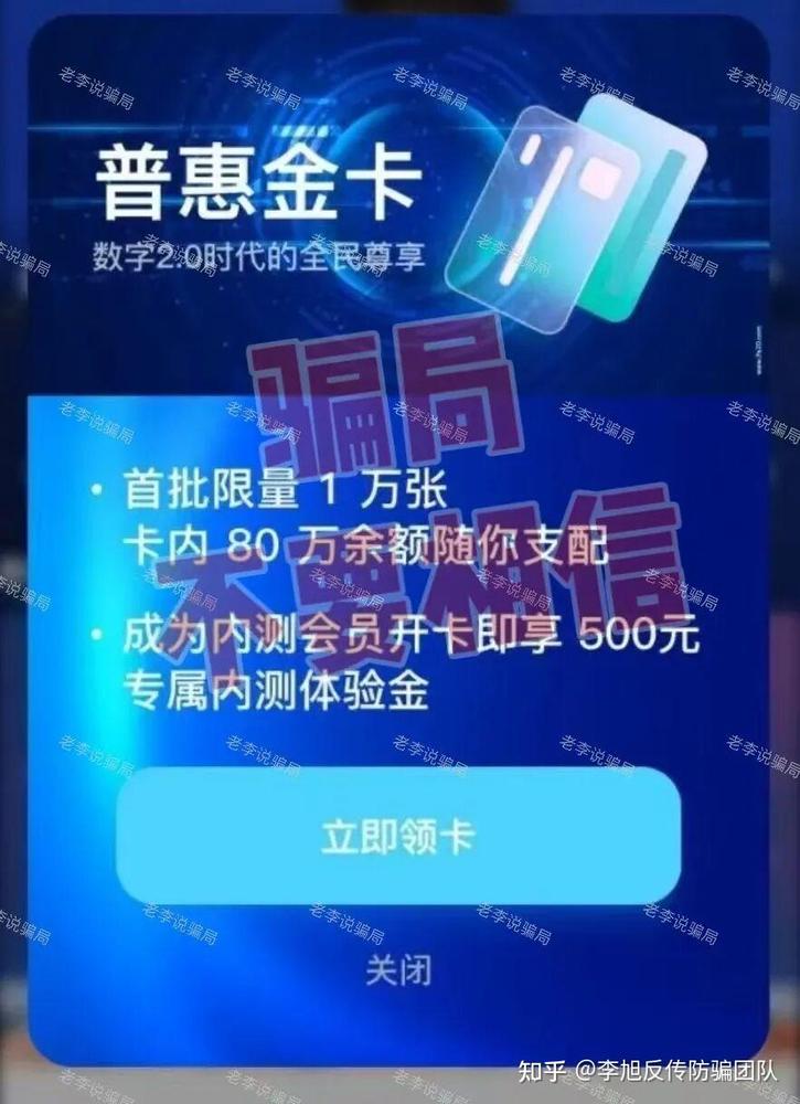 套牌騙局。假冒正規(guī)平臺(tái),以號(hào)稱內(nèi)含高額資產(chǎn)的普惠金卡、原始股吸引參與者,利用極具誘惑力的拉新獎(jiǎng)勵(lì)促使用戶主動(dòng)拉攏新人。