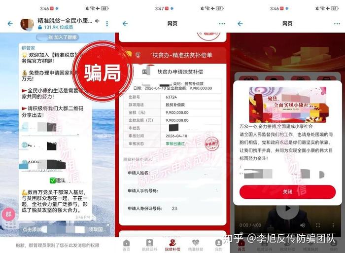 冒充國家官方扶貧機構,謊稱要給參與者發(fā)放148萬“扶貧款”,全程無任何官方資質(zhì)、無正規(guī)發(fā)布渠道,完全是騙子編造的虛假話術,切勿輕信。