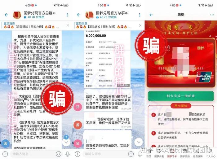 這個騙局已經(jīng)持續(xù)一段時間,近期還更新了詐騙套路:一方面以“提現(xiàn)、圓夢、領取福利”為噱頭,誘導大家辦理所謂“圓夢卡”,收取工本費、郵寄費;另一方面對認清騙局、想要退出的人,假意承諾“可辦理退費”,借機索要身份認證費。