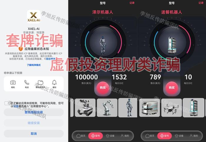 不法分子冒充國(guó)家數(shù)據(jù)局的名義,打著“人工智能”的旗號(hào),制作散布涉詐APP,虛構(gòu)推廣“智慧保障建設(shè)”“強(qiáng)化保障建設(shè)”等高額返利理財(cái)項(xiàng)目,采用傳銷模式發(fā)展下線,收款賬戶為個(gè)人、第三方公司,涉嫌傳銷、詐騙。