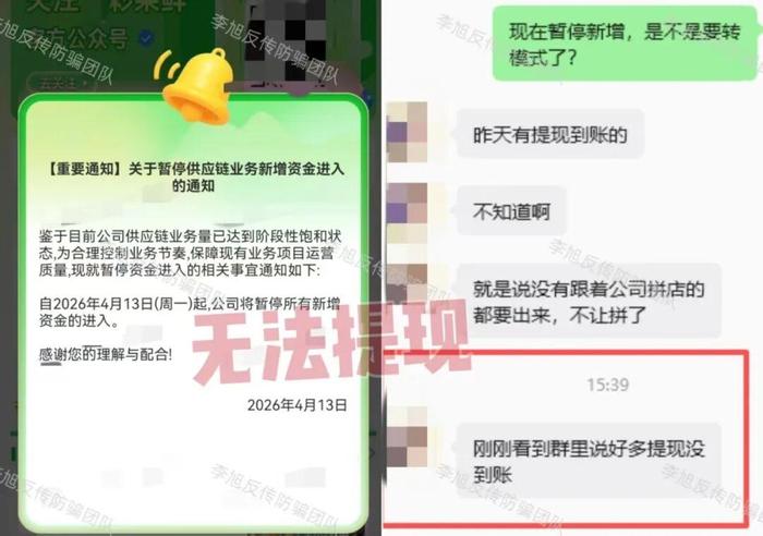 發(fā)表時間:2026-04-14 11:44作者:李旭反傳銷來源:李旭反傳防騙團隊 今天整理這些信息的時候,我們會發(fā)現(xiàn)很多項目對大家來說已經(jīng)不陌生了,有些甚至已經(jīng)被權威媒體和官方反復預警過多次。 可現(xiàn)實就是,我們依然能在后臺的咨詢中看到不少人,像著了魔一樣往里走。這些項目中的絕大多數(shù),從一開始就沒打算兌現(xiàn)任何承諾。它們本質(zhì)上,就是一個“永遠不會兌現(xiàn)的無底洞”。 在崩盤前的最后階段里,限制提現(xiàn)、頻繁更名……這些明顯的“收網(wǎng)”信號頻現(xiàn)。這時的項目方其實已經(jīng)不再費力偽裝了,只是在與不愿清醒的參與者之間,進行一場“看誰先放棄”的拉鋸戰(zhàn)??稍谶@場不公平的較量里,心軟的永遠不會是騙子。 比起識別一個全新的陷阱,如何在老騙局收尾時,守住最后一道防線,才是我們更應該學會的事。今天這些項目都已經(jīng)非常危險了,大家還是盡快撤離!千萬別猶豫! 1、“稀土穩(wěn)定幣”APP 冒用“稀土公司”的名頭,宣稱發(fā)行所謂數(shù)字穩(wěn)定幣,迷惑性很強。但實際上,稀土公司早在去年8月就公開發(fā)布了打假聲明,明確表示“從未與相關機構、單位就所謂“稀土人民幣穩(wěn)定幣”開展任何形式的合作、磋商或計劃,該信息系不法分子惡意編造?!?/p> 中國稀土集團嚴正聲明 ![]() 其項目收款賬戶與稀土公司毫無關系,均為不同的第三方公司或個人賬戶也是表明項目虛假的有力證據(jù)。 但凡看到打著“國企背景”旗號的投資或數(shù)字貨幣項目,一定要先打一個問號,主動通過官方渠道核實,騙子最擅長利用的就是大家對權威機構的信任。 2、“8+1”彩果鮮水果拼團 這個拼團項目我們已經(jīng)預警多次。最近,許多參與者反饋,平臺以“業(yè)務調(diào)整”為由,暫停了所有提現(xiàn)功能。這幾乎可以說是這類資金盤崩盤前的標準信號。 大家一定明白,當一個項目開始用“系統(tǒng)升級、維護、風控、業(yè)務調(diào)整”等理由拖延或限制提現(xiàn)時,基本可以斷定是準備“收網(wǎng)”了。這些說辭只是為了穩(wěn)住大家,為轉移資金爭取時間。 如果您或家人參與其中,請不要再等待,立即整理好轉賬記錄、聊天記錄等證據(jù),向當?shù)毓矙C關反映情況。 ![]() 3、套牌的“農(nóng)夫山泉”APP 盜用知名品牌“農(nóng)夫山泉”信息的山寨APP。 以“5568萬幫扶金”為誘餌,利用辦卡郵寄的名義套取用戶個人信息。近日開始假借“設置取款密碼”要求參與者繳納費用。 無論是辦理銀行卡還是設置密碼,正規(guī)機構都不會收取任何費用。 這些所謂的“工本費”“密碼費”很可能只是試探,一旦交了,后面很可能還會有“保證金”“所得稅”等各種名目等著大家。千萬不要相信! ![]() 4、“終谷集團(終谷農(nóng)項)”掃碼走通道 不少參與者向我們反饋,該項目聲稱4月底將前往鳥巢召開集會,以此忽悠參與者更加積極拉攏新人完成各種任務。 該項目常年以“掃碼走通道、天降福雨”為口號,誘騙中老年人無償勞作,項目多次更名,本質(zhì)是無任何備案資質(zhì)的非法組織。 ![]() 5、虛構的“國家補貼中心”APP 冒充國家扶貧項目,聲稱將為參與者發(fā)放養(yǎng)老、住房、醫(yī)療、扶貧等多項補貼,先用小紅包吸引人注冊和拉人頭,最近則開始以“發(fā)放補貼”為由,要求繳納所謂的“辦理費”。 經(jīng)過核實,這個APP根本沒有在國家相關部門備案,其服務器地址也在境外。 注意!真正的國家補貼都有嚴格、公開的申請和發(fā)放渠道,絕對不會通過一個來路不明的APP進行,更不會要求您提前繳納任何費用。 凡是讓您先交錢再領補貼的,請務必遠離。 ![]() 6、“BitradeX-AiBot”交易所 違規(guī)發(fā)行所謂的“BTX”幣,打著“AI量化-智能托管”的旗號,以“0.1%-0.5%”的超高日收益率吸引投資者。同時設置“直推獎”“間推獎”“團隊獎”“平級獎”等動態(tài)收益,鼓勵用戶拉攏新人。 根據(jù)2026年2月中國人民銀行等八部門的最新通知,包括比特幣、以太坊及各類“穩(wěn)定幣”在內(nèi)的虛擬貨幣,并不具備與法定貨幣同等的法律地位,相關業(yè)務活動在我國境內(nèi)屬于非法金融活動。 打著“金融創(chuàng)新”旗號,承諾保本高息、鼓勵拉人頭的模式,本質(zhì)上就是龐氏騙局。高收益必然對應高風險,而天上也不會掉餡餅。 ![]() 7、虛構的“新社惠農(nóng)”APP 打著“惠農(nóng)補貼”旗號的陷阱。目前,這個APP已經(jīng)無法打開,項目群中所謂的負責人均已失聯(lián),疑似關網(wǎng)跑路。 早在去年12月,明溪農(nóng)信聯(lián)社就曾成功攔阻一位因參與該項目正試圖向不法分子轉賬的老人。還望廣大網(wǎng)友以此為戒。 慧眼識詐筑防線——明溪農(nóng)信聯(lián)社成功攔截一起涉詐資金轉移 8、虛構的“人民資產(chǎn)”APP 有參與者反饋,目前該項目看似進入“提現(xiàn)階段”,但實則還是以此忽悠參與者繳納1800元獲得所謂的“取款序列號”完成取款動作,可即便交了錢,也未必真能提出來。而不交錢的用戶,賬戶資金將會被直接凍結。 這實際上就是在利用投資者不甘心損失本金的心理,進行最后的收割。 多地官方都曾明確指出該項目就是一場騙局,仍舊擋不住“執(zhí)拗”的參與者。大家還是認清現(xiàn)實,盡早止損吧。 每日反詐提示丨假冒