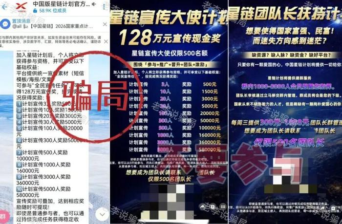 打著“”星鏈計(jì)劃”旗號(hào),以招募“宣傳大使”的名義忽悠大家在某境外聊天軟件內(nèi)添加陌生好友提交個(gè)人信息。利用“高額拉新獎(jiǎng)勵(lì)”、“團(tuán)隊(duì)管理獎(jiǎng)”刺激參與者不斷拉人。