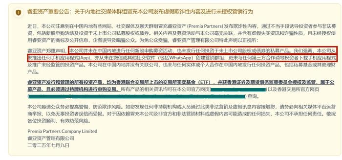 該項(xiàng)目假冒正規(guī)企業(yè)"睿亞資產(chǎn)管理有限公司"的旗號(hào),然而正主"睿亞資產(chǎn)"早就發(fā)過(guò)聲明,公司從未推出任何手機(jī)應(yīng)用程序(App)。
