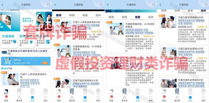 針對(duì)銀發(fā)人群,騙子以為養(yǎng)老為名,制作散布涉詐APP,虛構(gòu)推廣“個(gè)人養(yǎng)老金體驗(yàn)”“AI科技投資基金”“終身壽險(xiǎn)”等每日返息,到期返本理財(cái)項(xiàng)目實(shí)施詐騙。